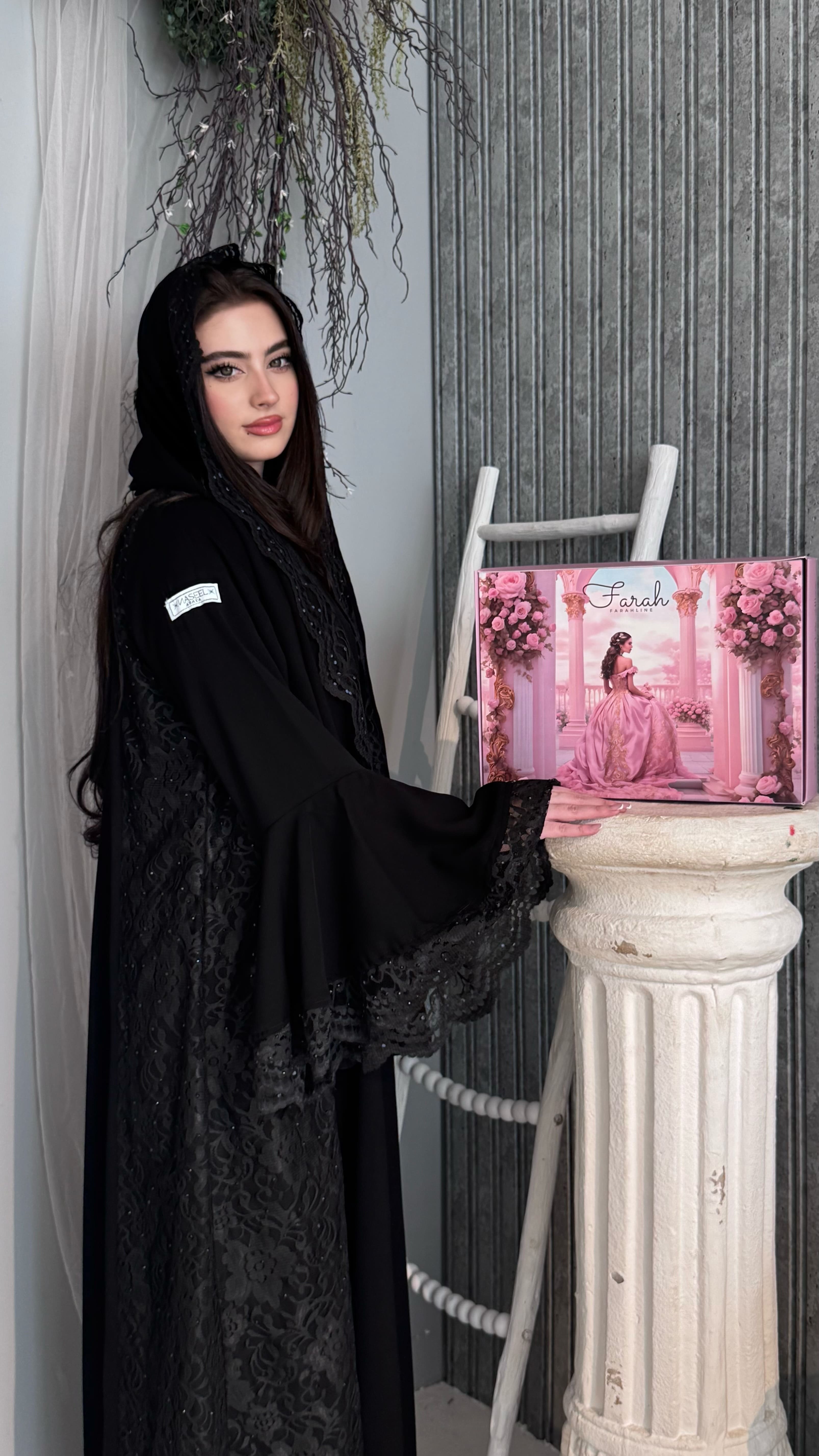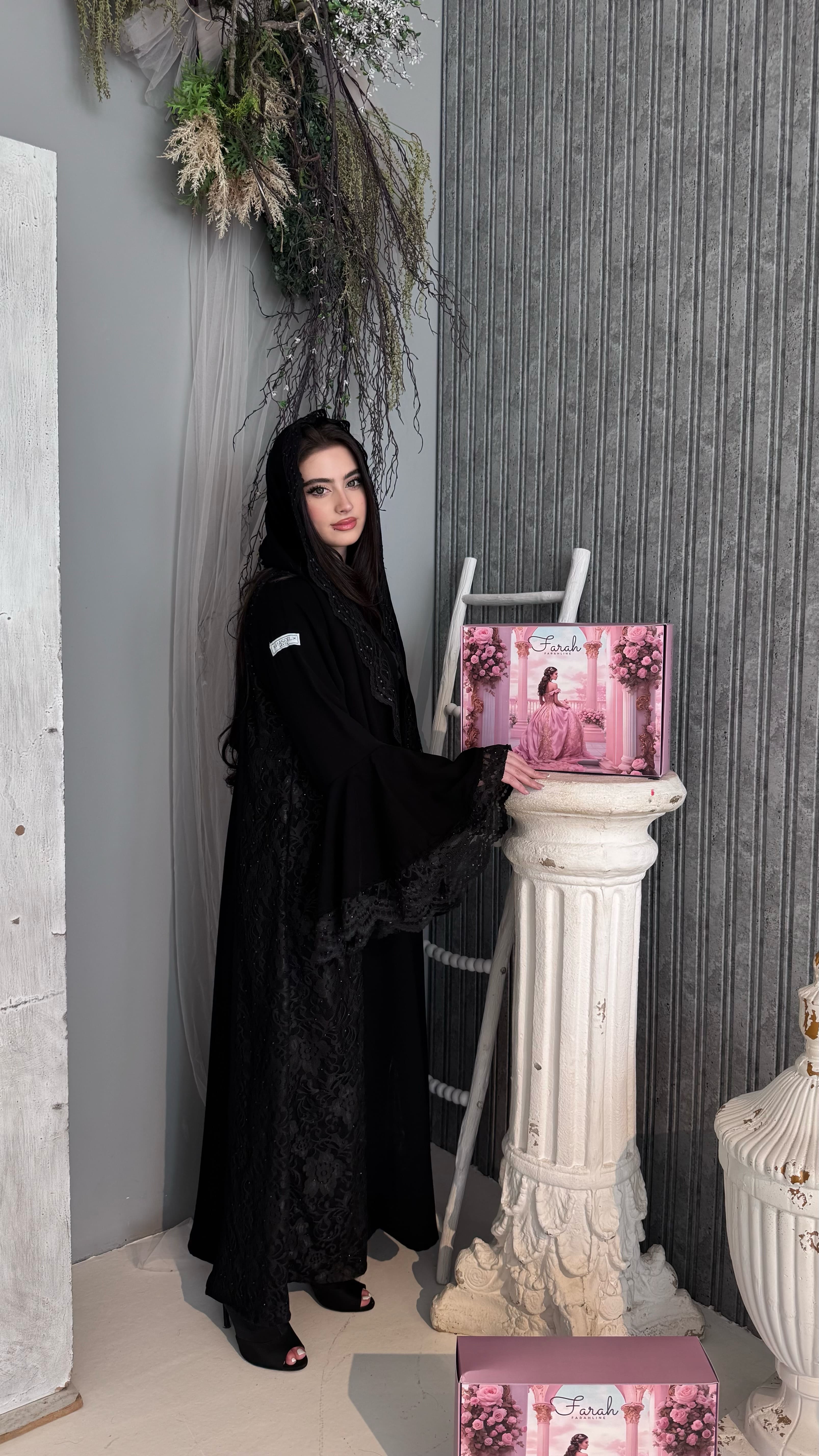عباية بقماش ملكي مع تطريز دانتيل فرنسي