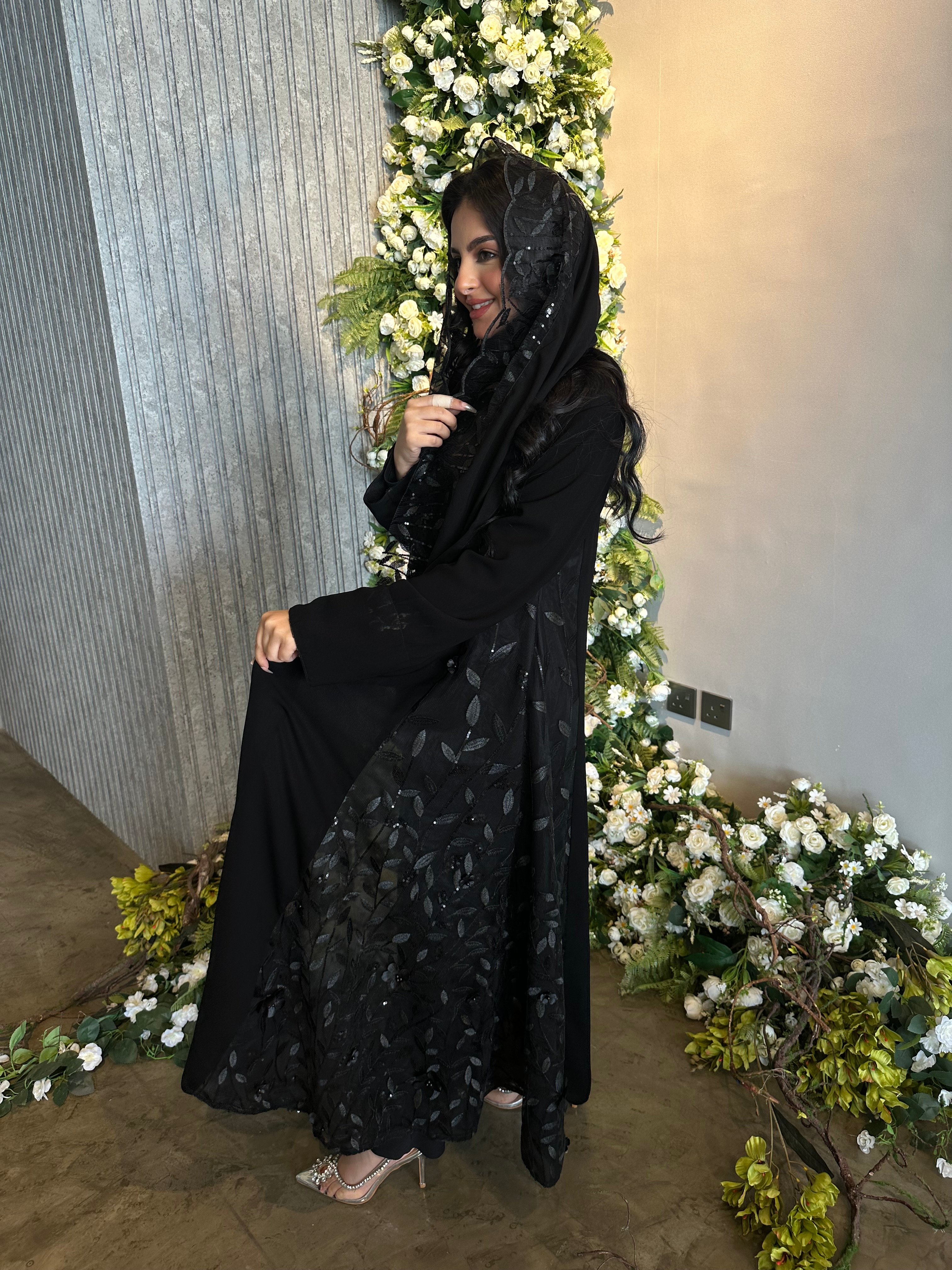 عباية بقماش ملكي كوري مع تل مشكوك ومطرز من الجنبين